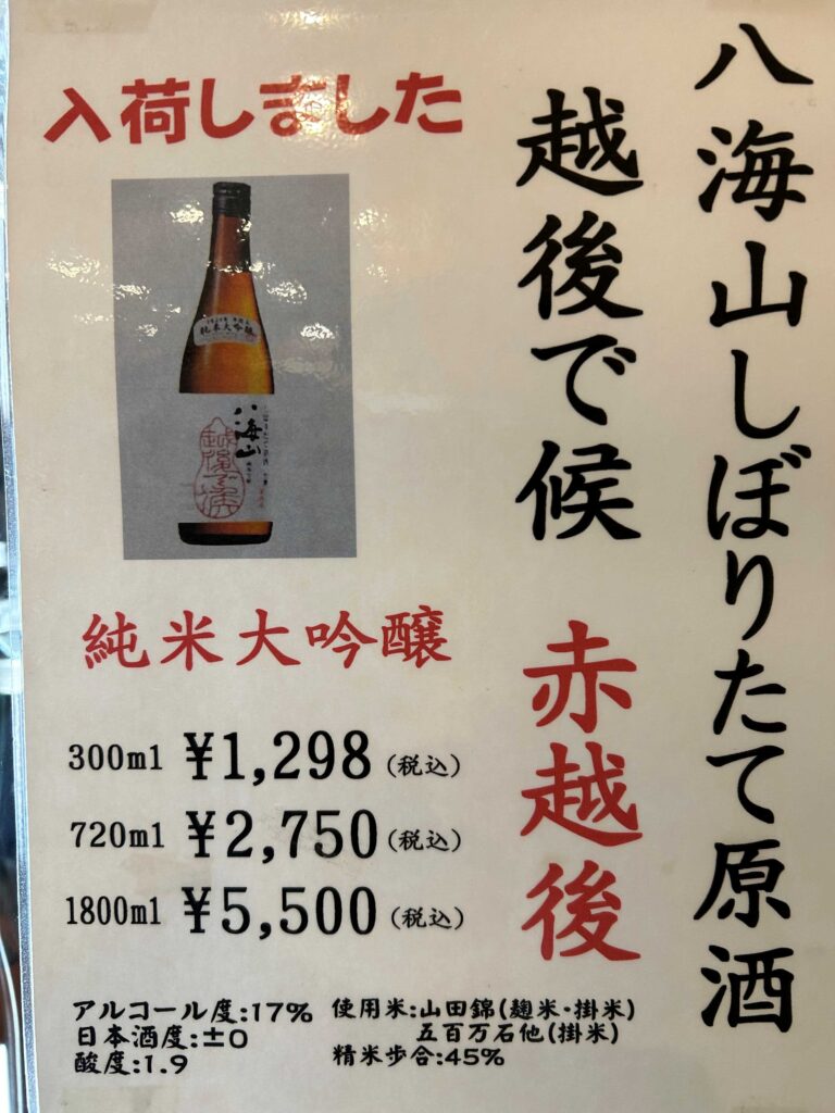 八海山 越後で候 赤越後 純米大吟醸 入荷しました。