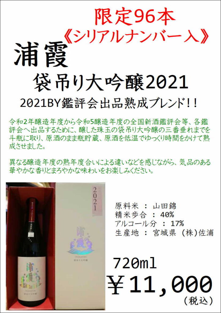 『浦霞 袋吊り大吟醸2021』入荷しました