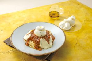 とろけるブッラータとモッツァレラの濃厚なミルク感が、じっくり煮込んだボロネーゼソースと溶け合う贅沢仕立て。